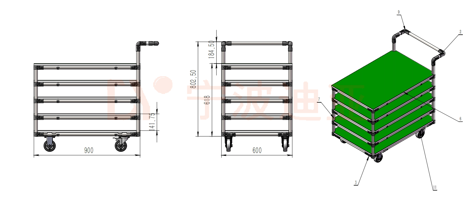 3.底部采用3寸插杆脚轮2万2万向带刹);
