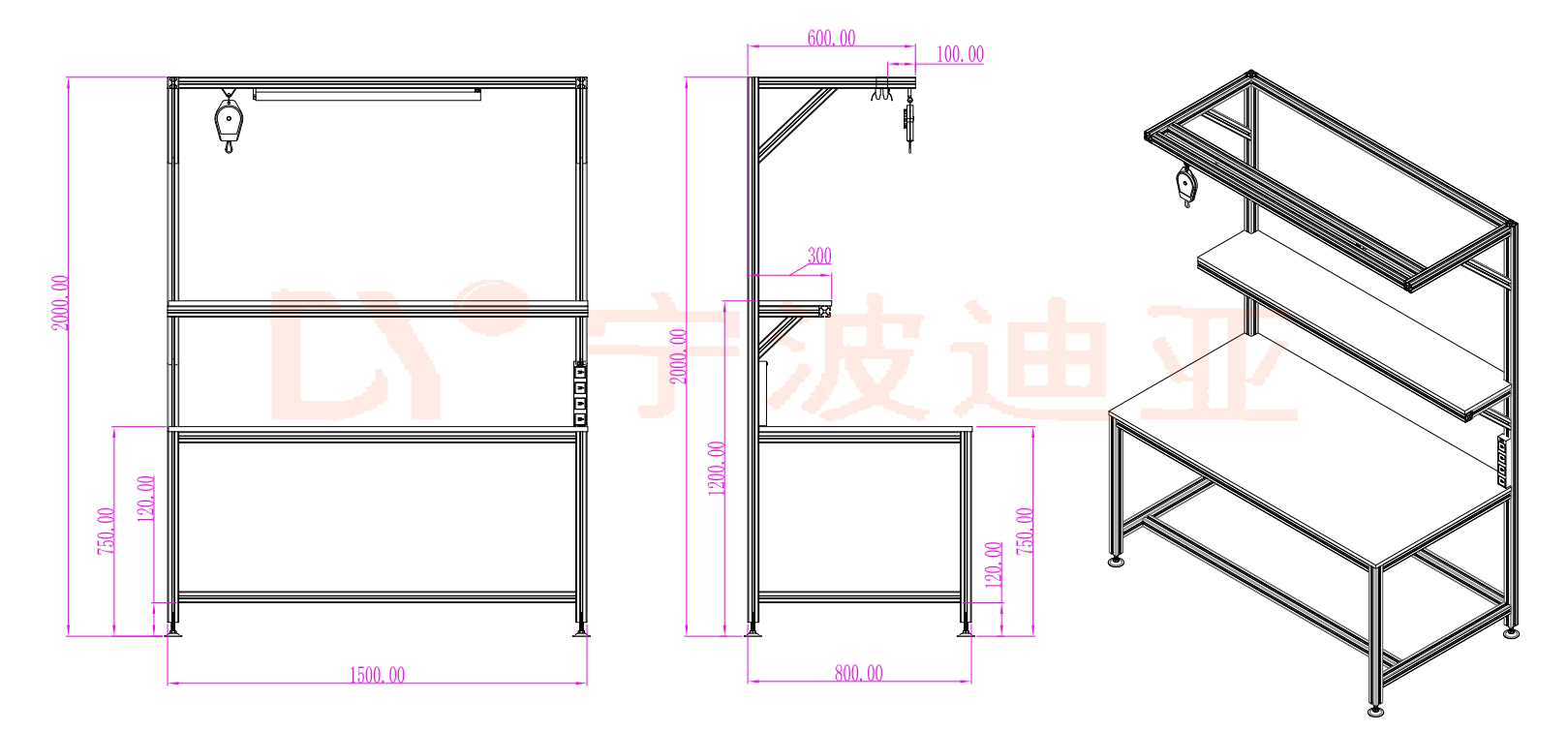 1.主材采用4040国标型材加连接件组成;