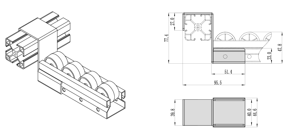4033钣金流利条系列与40型材连接的低接头。