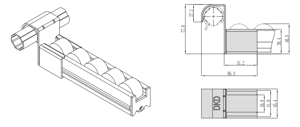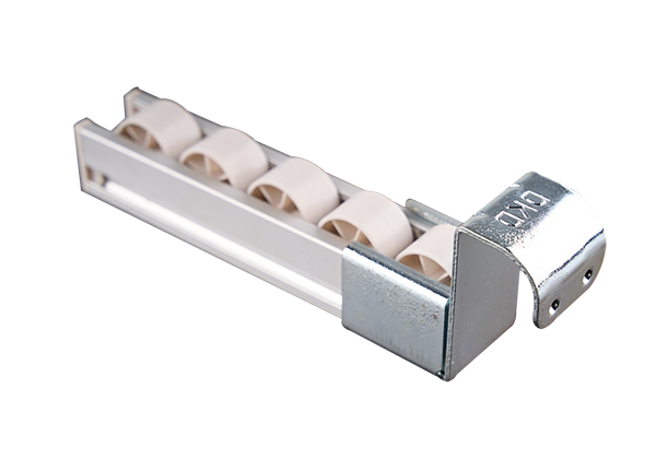 4035铝合金流利条系列与三代Φ28精益管连接的低接头,需要与40定位器防磨套配合使用,前端圆弧设计更利于料箱的流出。