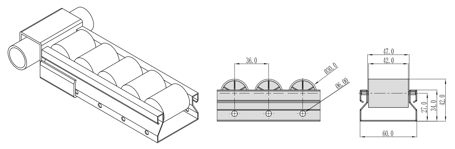广泛用于工厂的产品配送和转运的滑动装置,钣金类承重能力稍强,噪音较大。