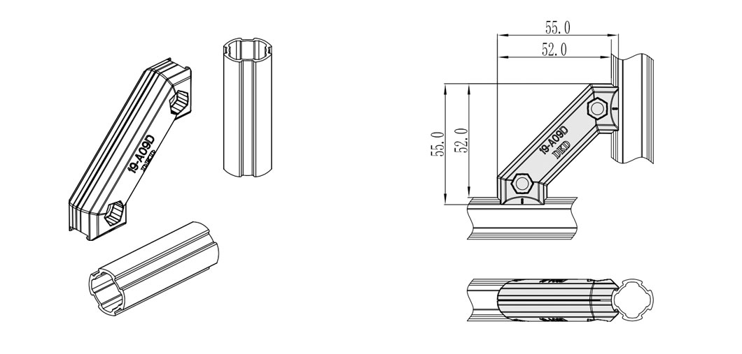 三代Φ19精益管90°结构L角的加固接头,用于直角或立面的加强连接。