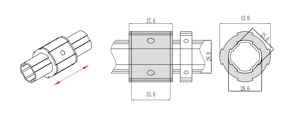 用于Φ28三代精益管上实现水平方向直线滑动。