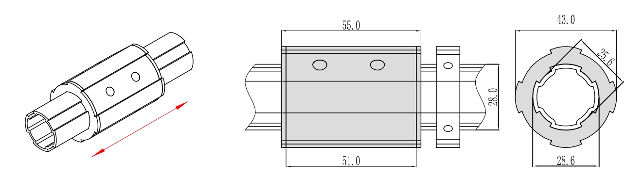 用于Φ28三代精益管上实现水平方向直线滑动。
