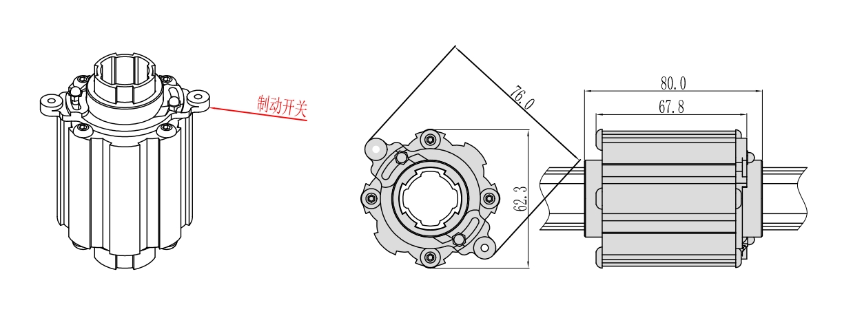 在三代Φ28精益管上通过制动装置,实现单向旋转和双向旋转的切换。