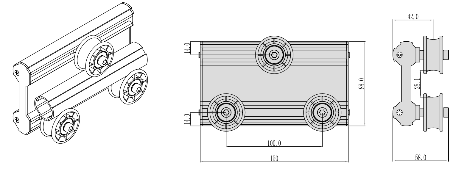 利用凹槽轴承滚轮在线棒凸出部分可顺畅滑动的辅件。