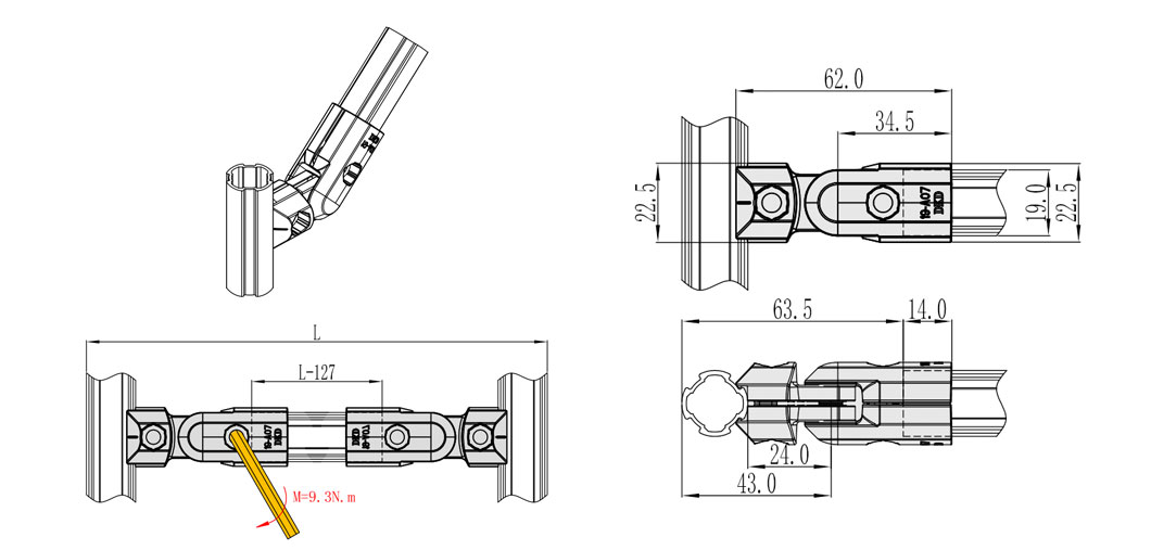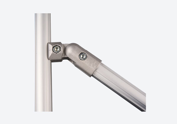 三代Φ19精益管180°可变角度结构的固定接头,螺丝锁紧后固定角度。