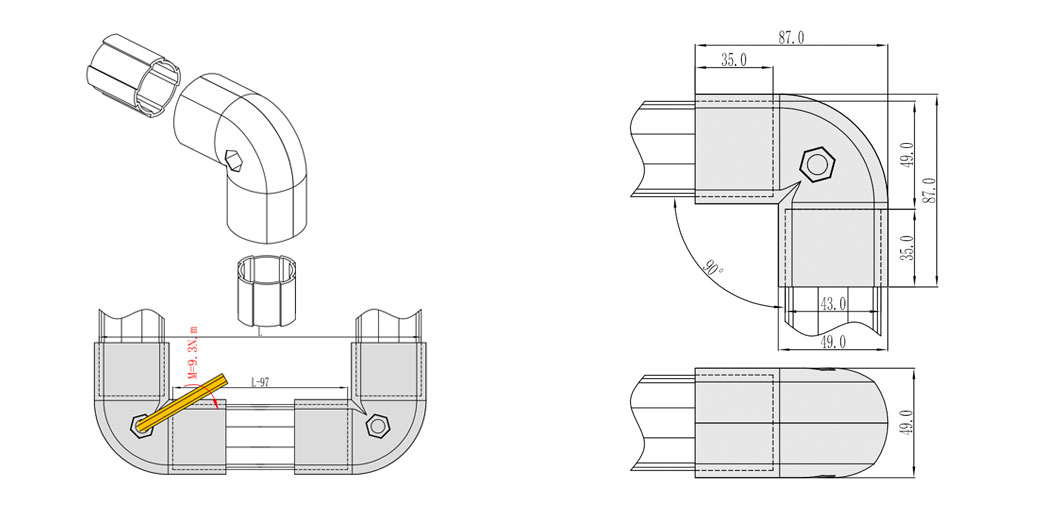 三代Φ43精益管L型90°结构的连接外接头。