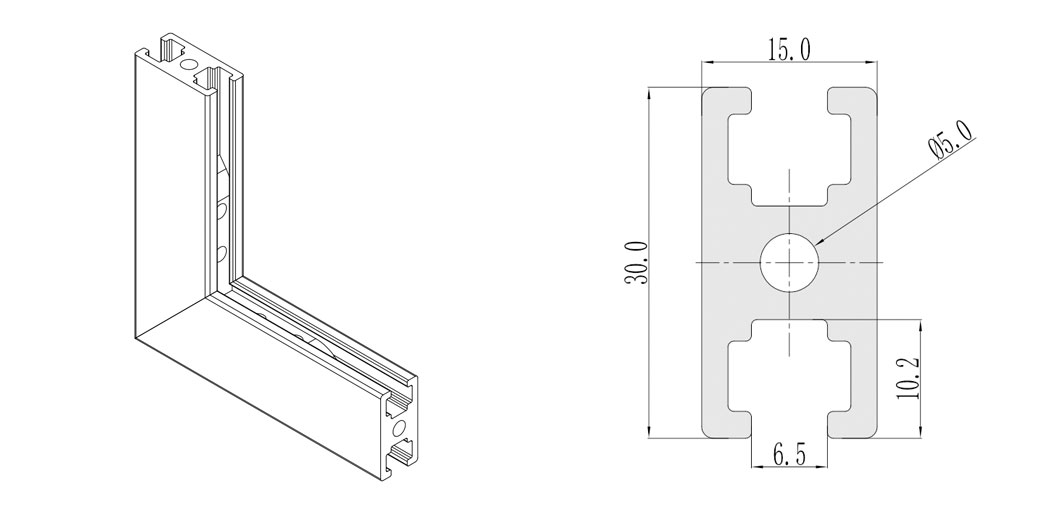 用于铝合金型材产品柜中门框的制作,型材中间可以镶嵌板材。